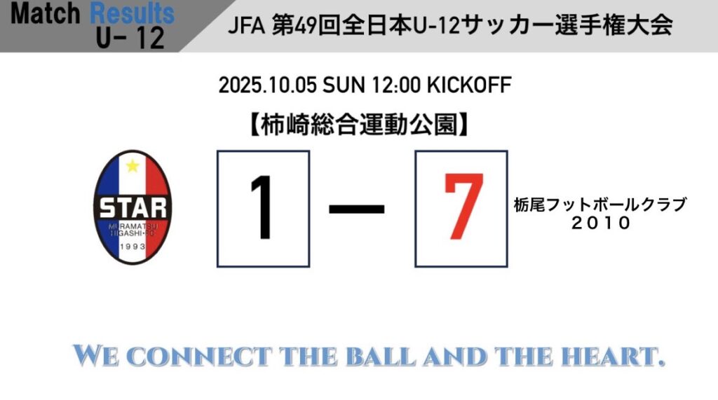 2025.10.05 JFA全日本U12サッカー選手権大会の試合が行われましたので結果を報告させていただきます。 2025 10/09 NEWS U-12 2025年10月9日 あわせて読みたい 試合結果 – FCステラ -official site- NEWS U-12 この記事が気に入ったら フォローしてね! Follow Me シェアお願いします URLをコピーしました! URLをコピーしました! 10月のキッズスクール体験会の開催日時が決定いたしました! 関連記事 2025.10.26 第2回FCステラジュニアユース練習体験会 開催のお知らせ 2024年12月25日 2025.09.14~15(日/祝)に行われました 2025年度HondaCarsカップ下越予選の結果をお知らせします。 2024年10月9日 クラブOB 熊倉弘達 ヴァンフォーレ甲府加入内定 2024年4月7日 U15フットサル大会 北信越大会出場決定 2024年2月9日 FCステラホームページ リニューアルOPEN 2021年3月18日