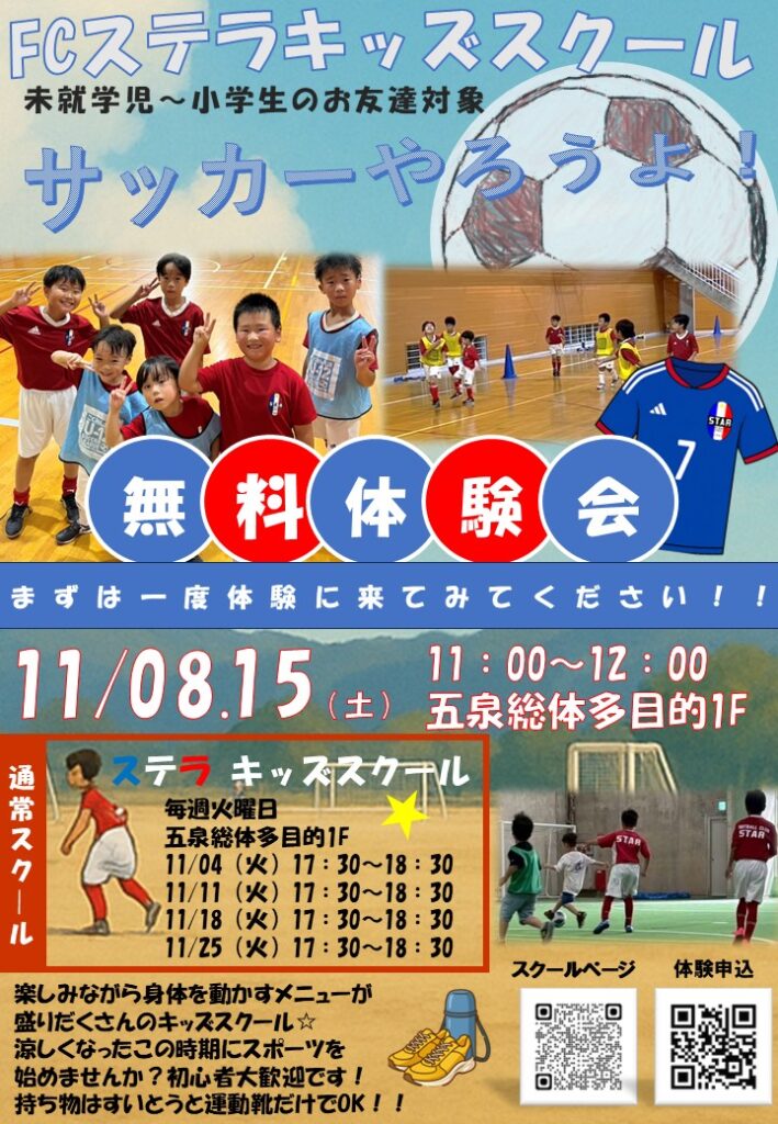 11月のキッズスクール体験会の開催日時が決定いたしました!