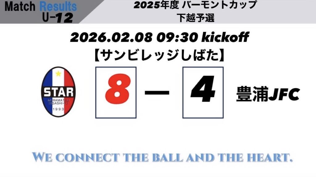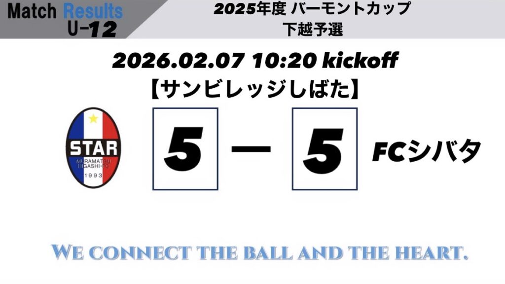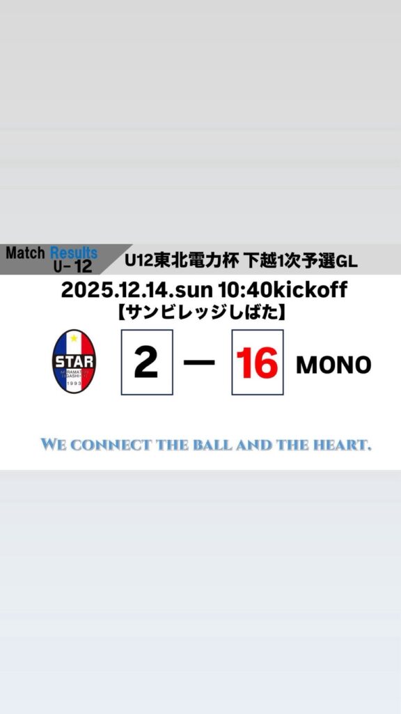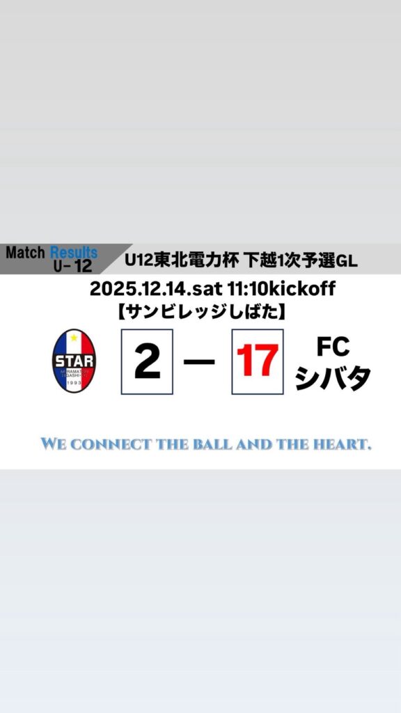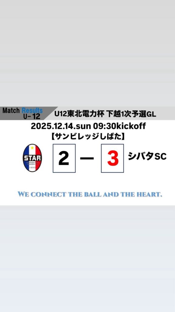 U12東北電力杯下越1次予選GL 0勝4敗0分の勝点0でGL5位となり予選敗退が決定いたしました。